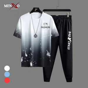 Stay trendy and comfortable with this **Gradient Splash Streetwear Set**. Designed for a modern urban vibe, this two-piece outfit includes a **short-sleeve t-shirt** and **jogger pants** that perfectly balance style and comfort.