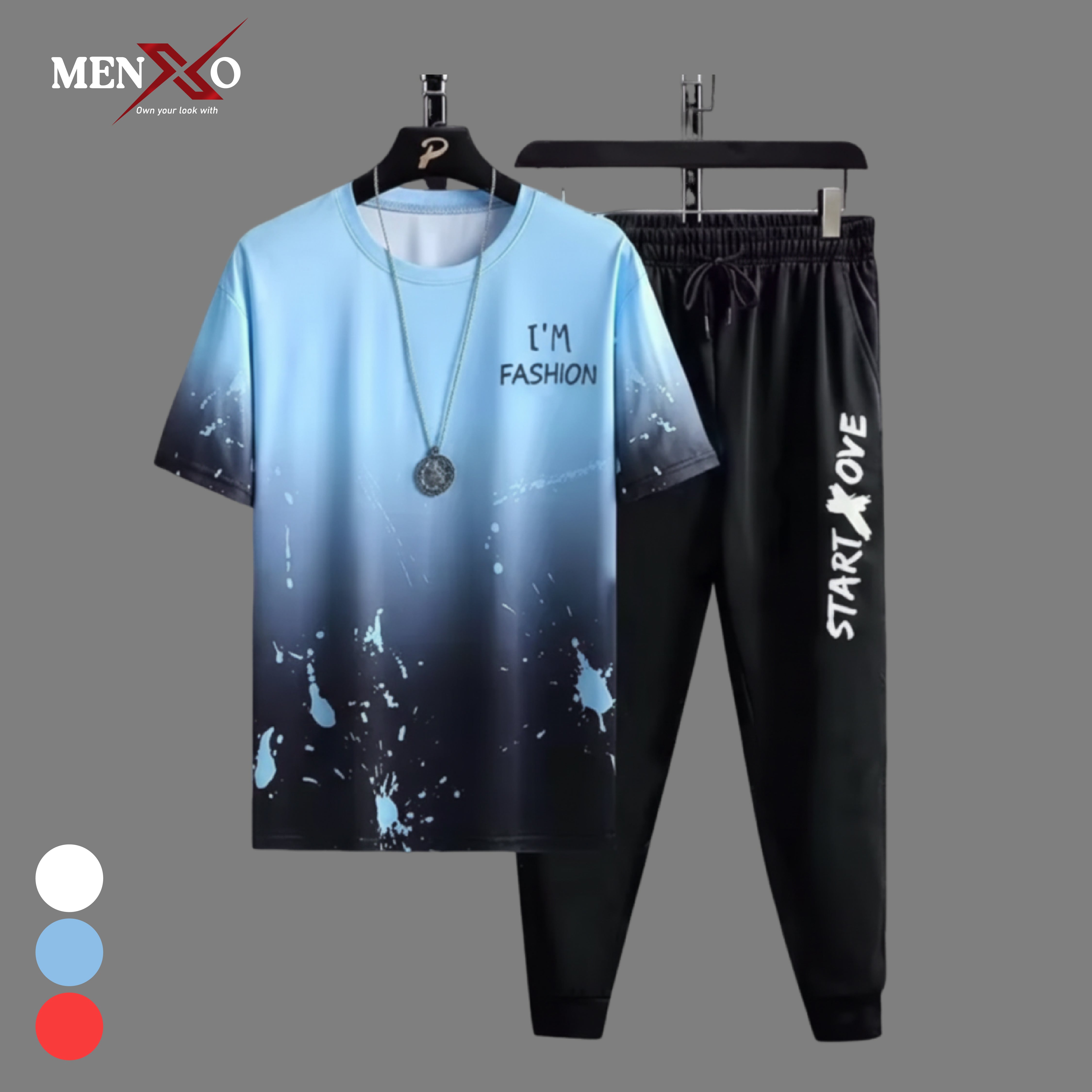* **Top:** Round-neck short-sleeve t-shirt with “I’M FASHION” text on the chest.